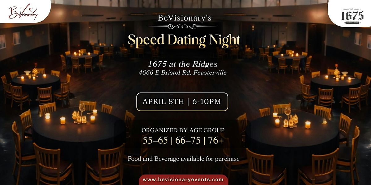 Speed Dating Night for singles 55+ on Apr 8 in Feasterville, PAโage-group rotations, mingling, cocktails & dancing. Tickets from $35.