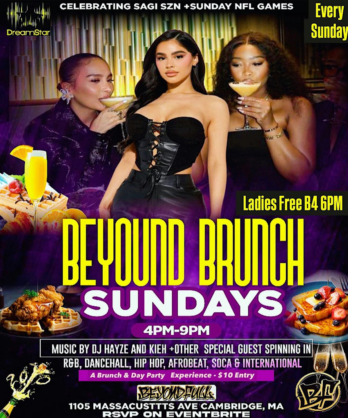Don't miss Beyond Brunch where we come to brunch but go beyond with day party vibes with DJs starting off with smooth RnB vibes then transition into a mix of other genres. Offering all day breakfast, chicken and waffles, endless mimosas and endless vibes with full bar and dancefloor! Don't miss it it each and every Sunday!