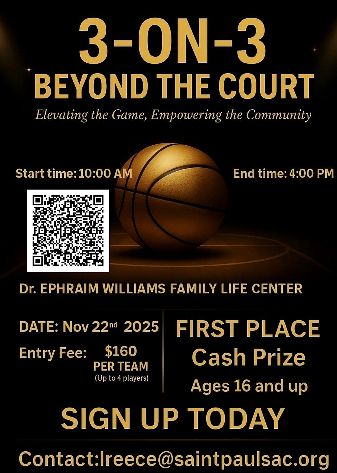 Mark your calendars and get ready to go beyond the court at this thrilling 3-on-3 basketball tournament. See you there!