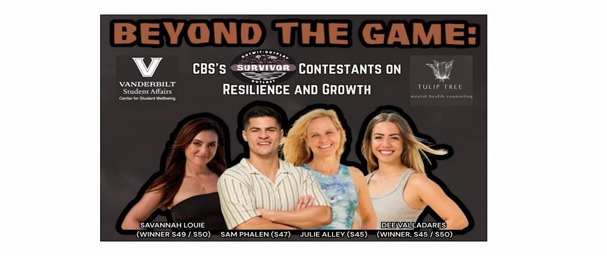 Join us for Beyond the Game, a powerful and engaging panel featuring former Survivor contestants as they reflect on what it takes to endure life’s most challenging moments both on and off the island. Moderated by licensed professional counselors, this conversation will explore the emotional, psychological, and relational lessons that come from surviving adversity.
