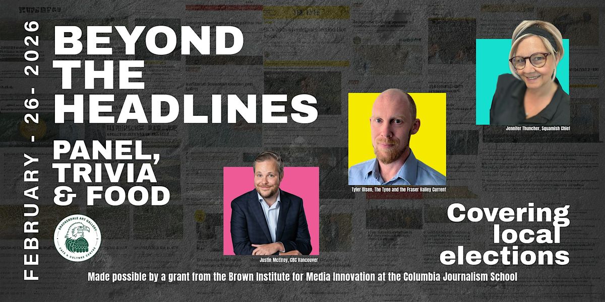 About the Event: here will be a moderated panel discussion on municipal elections with three celebrated and veteran municipal journalists: Justin McElroy of the CBC, Tyler Olsen of the Fraser Valley Current and the Tyee and our very own editor in Chief from the Squamish Chief, Jennifer ThuncherThis is a night of election tales, food, and hopefully debunking some ideas on what has worked and hasn't worked in local elections and how the job of a journalist has changed over the years. T.