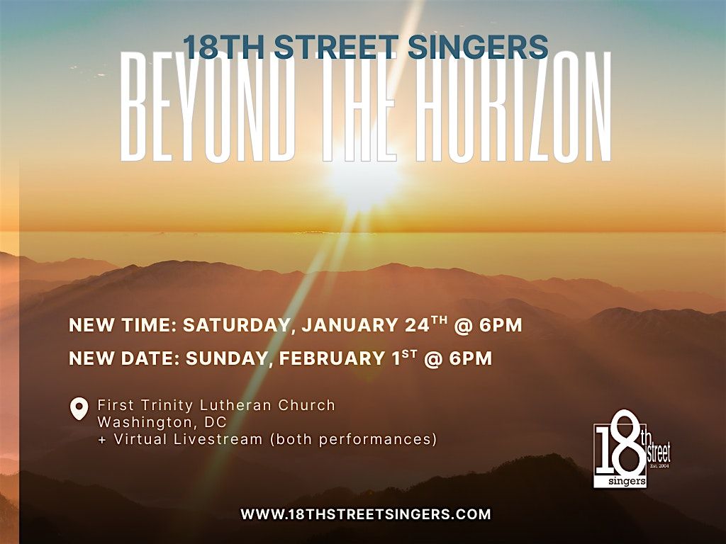 Join us Saturday, January 24 at 6:00pm and Sunday, February 1st at 6:00pm at First Trinity Lutheran Church in Washington, DC, as we gather to reflect, listen, and imagine what comes next. With pay-what-you-can tickets, free student admission, and a Saturday livestream, Beyond the Horizon invites all to pause together at the threshold—and to listen for what lies beyond.