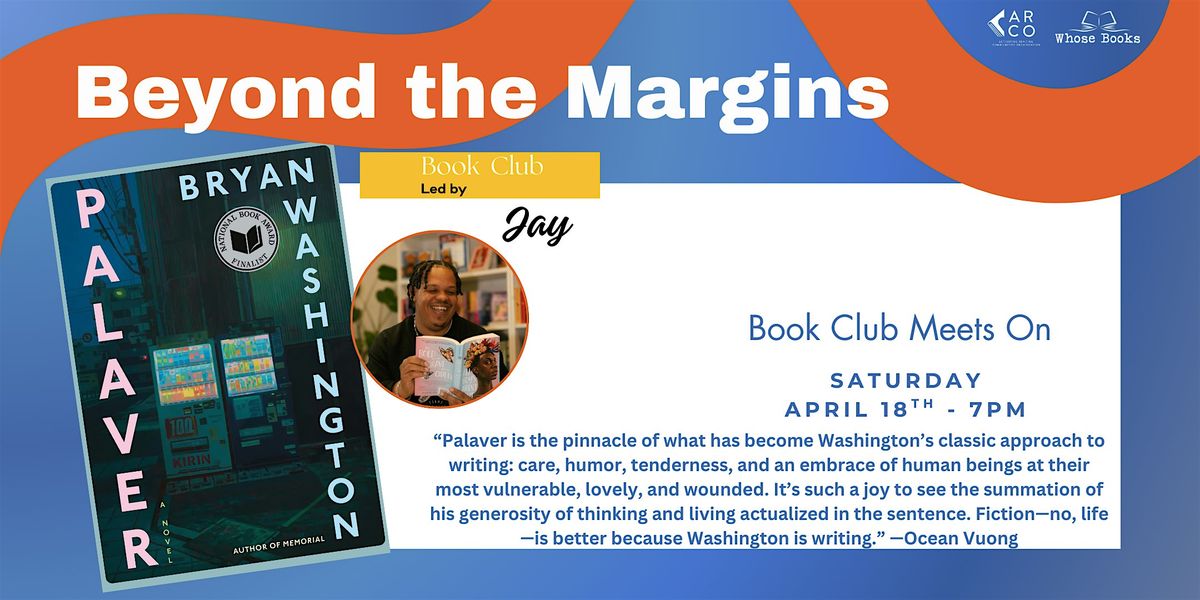 Join Beyond the Margins Book Club, led by Jay, for a discussion of Palaver by Bryan Washington, a powerful novel exploring relationships, identity, and the complexities of love, family, and belonging.