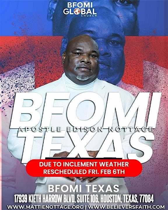 Join Apostle for the BFOMI Global Texas Revival — a night of power, healing, and breakthrough!