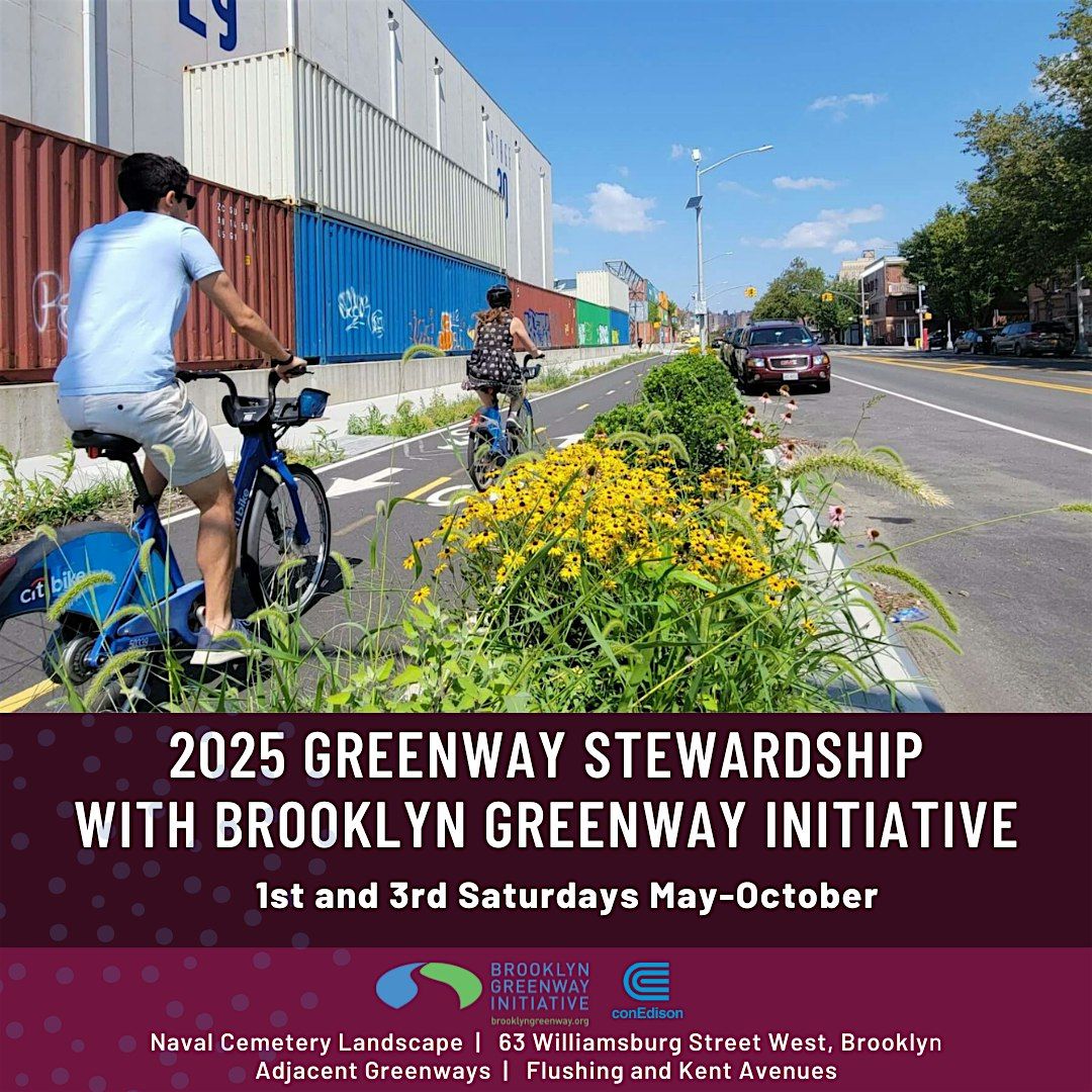 This year, join BGI gardeners in keeping the greenways green! Learn invasive plant management and about the benefits of native perennials and street trees as we steward the Greenway! As a non-profit organization we operate the Naval Cemetery Landscape to showcase the impact of well-maintained green space along pedestrian and cyclist pathways, on both community members’ wellness and biodiversity of other species. We’ll train volunteers on aspects of the care of the NCL and advocate for that level of care on the NYC’s greenways with a focus on expanding seasonal stewardship to the greenways adjacent to the NCL area. Learn about the Naval Cemetery Landscape (NCL), greenways in Brooklyn, and how community groups and members can support their beauty and accessibility for everyone! BGI will guide volunteers in identification and targeted removal of invasive species in the Naval Cemetery Landscape as well as street tree stewardship, including weeding and aerating tree pits and removing trash from the tree pits and the Brooklyn Waterfront Greenway.