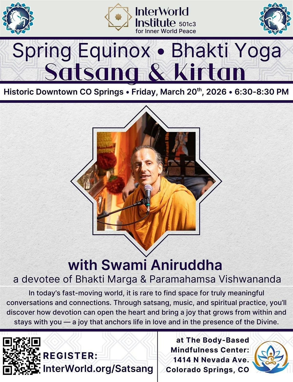 In Satsang, seekers and teachers gather for spiritual discourse, devotional singing, and meditation. You are invited to gather with Swami Anniruddha, who is on tour in Colorado this year! Join us for a rare opportunity to receive the knowledge of BhaktiMarga and the teachings of Paramahamsa Vishwananda.