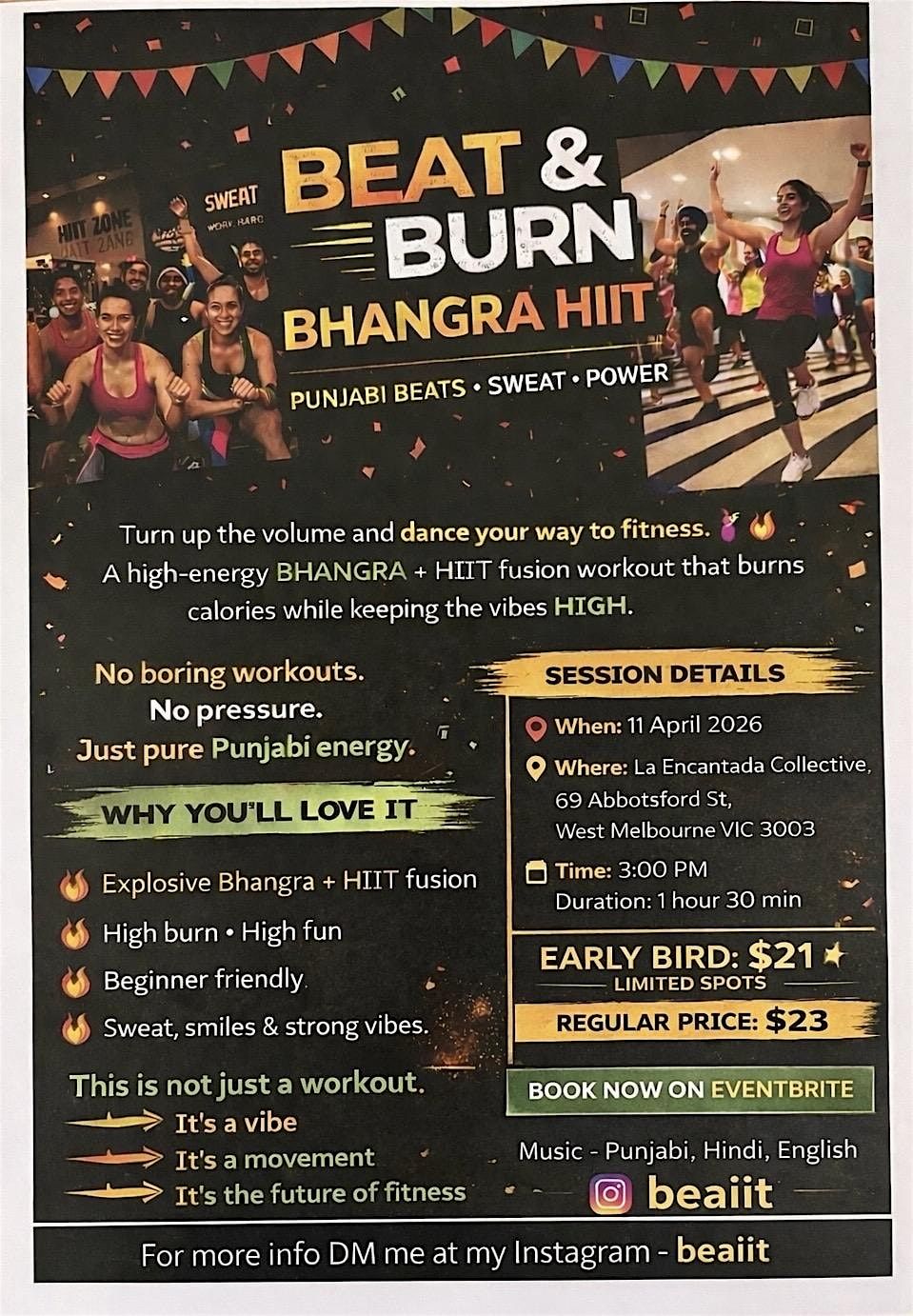 BHANGRA +HIIT FUSION !!Unlimited Fun. You gonna feel more energised. What to expect : warm up , some stretches bhangra hiit & coolAbout this Event