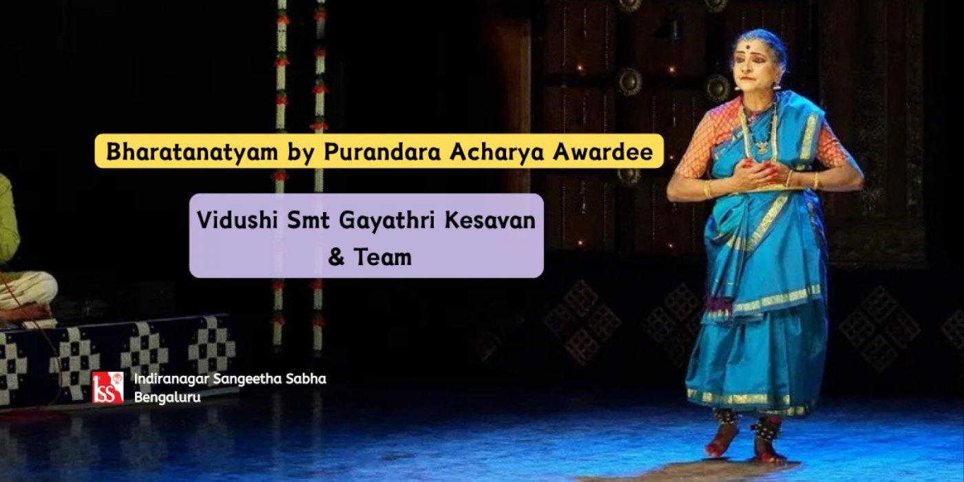 Step into an evening of classical brilliance as Vidushi Smt Gayathri Kesavan, honored with the Purandara Acharya Award 2026, presents a captivating Bharatanatyam performance with her team.