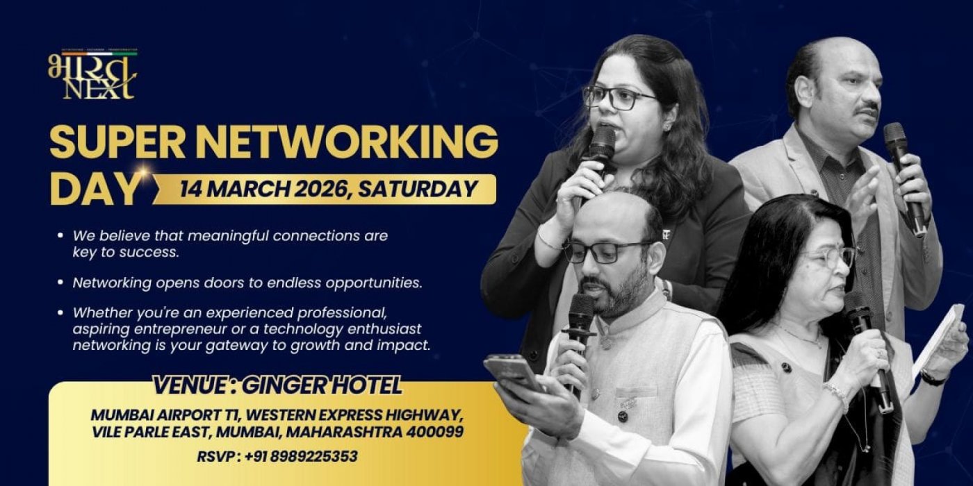 Step into the future of networking at the BHARATNEXT SUPERNETWORKING DAY! Join us at Ginger Hotel near Santacruz Airport on March 14th 2026 at 07:00 AM in Mumbai Maharashtra for an event like no other.