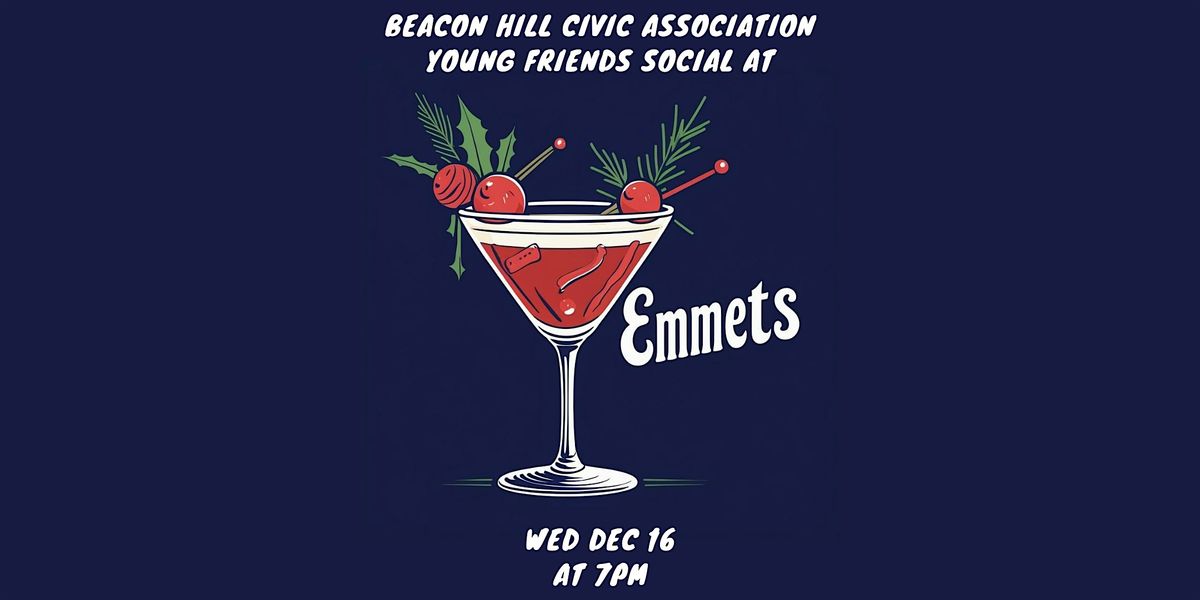 Looking for that perfect festive vibe? Look no further than a decked out Emmets! It’s exactly the “I’ll hop in for one drink before heading home for the holidays” kinda place. For the sake of ease, please order and pay for yourself at the bar. Be on the lookout for a sign with our navy blue BHCA logo on one of the tables.