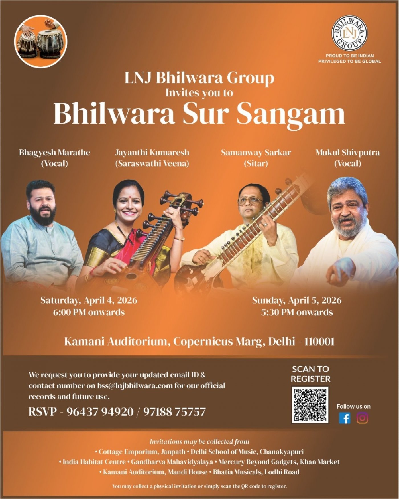 Bhilwara Sur Sangam 2026 returns with its 13th edition, bringing together some of India’s finest classical musicians for an evening of rich musical traditions. Curated by the LNJ Bhilwara Group, the festival celebrates the depth and diversity of Indian classical music, offering audiences an immersive cultural experience in New Delhi.