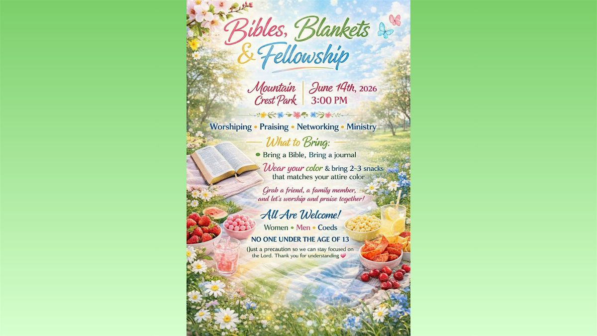 We’re bringing Bibles, Blankets & Fellowship to the park, and it’s about to be a whole vibe. God-centered, peaceful, but still FUN. This is a free gathering, so just come ready. Bring your Bible, your journal, your blanket, and whatever color you decide to wear. Bring at least 2 snacks that match so we can all share and have enough to go around. So we can all share and have enough to go around.