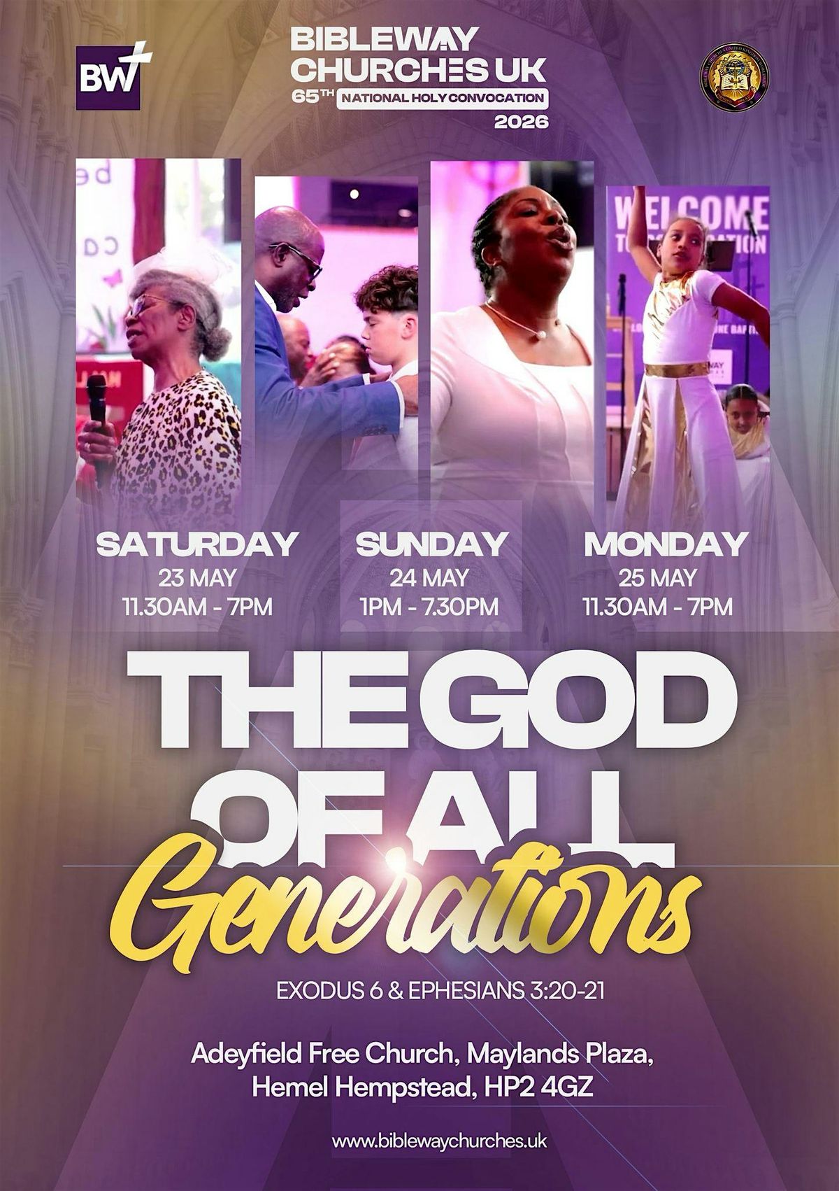 We are thrilled to welcome you to our 3-day celebration of faith, fellowship, and spiritual growth. This year marks a significant milestone as we commemorate the 65th year of our National Holy Convocation under the inspiring theme: "The God of All Generations." Drawing from the powerful messages in Exodus 6 and Ephesians 3:20-21, we gather to celebrate the timeless nature of our God, who continues to work wonders across all generations.