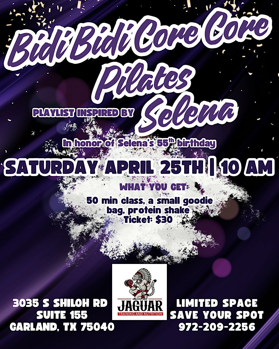 Join us for a Pilates class inspired by the one and only Selena as we celebrate what would have been her 55th birthday! Expect a fun, energizing workout with a playlist full of Selena classics while we sculpt, strengthen, and work that core.