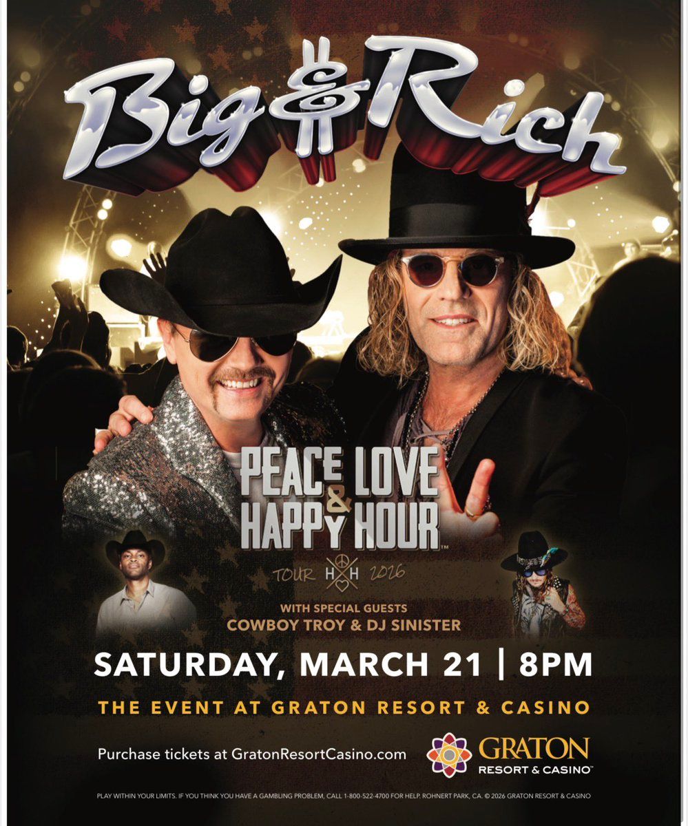 β¨ Experience the magic of Big and Rich, where moments become memories that last a lifetime! ποΈ The iconic The Event At Graton Resort & Casino in Rohnert Park, CA sets the perfect stage for an unforgettable celebration on March 20th, 2026 at 04:00 PM. π It's been a curated experience that brings together the best of entertainment and innovation, creating an atmosphere of wonder and excitement. From the moment you arrive, you'll be immersed in a world where the ordinary transforms into the extraordinary. π Book early to secure your place in what promises to be an event that will be talked about for years to come!http://maps.seatics.com/TheBallroomAtGratonResort_Endstage2_2021-10-30_2021-08-13_1648_08132021_170253_SVGC_tn.png