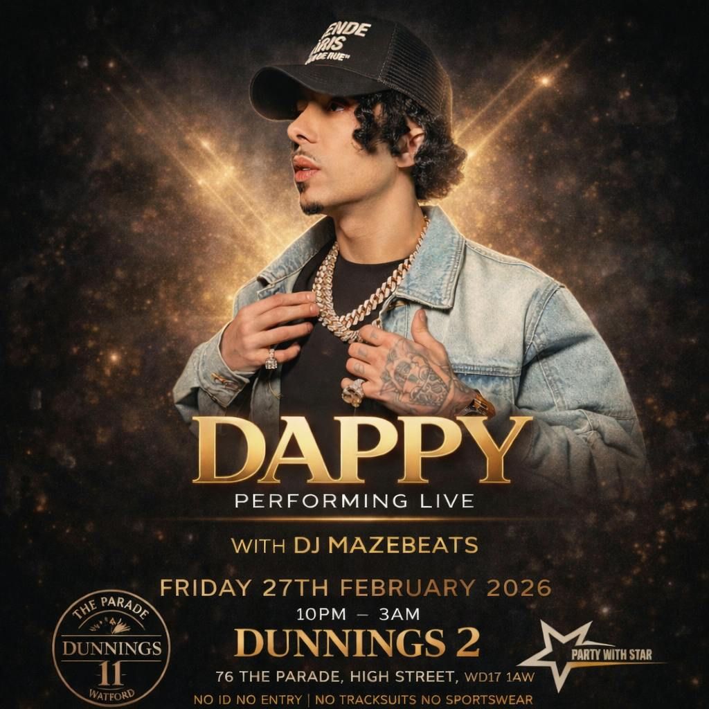 ?si=AxuK5Cz6KFg8JeUCDue to high demands, We are proud to announce multi platinum selling superstar Dappy aka lead singer of one of the biggest music group N-dubz is coming down to Dunnings 2 to join us on a big night for a performance of a lifetime