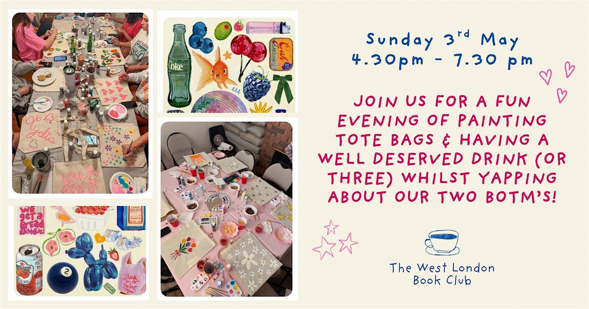 This month we will be heading to The Peacock Room at The Duke of Wellington, Portobello Road. We will relax over a few drinks & have some silly fun painting your very own tote bag.