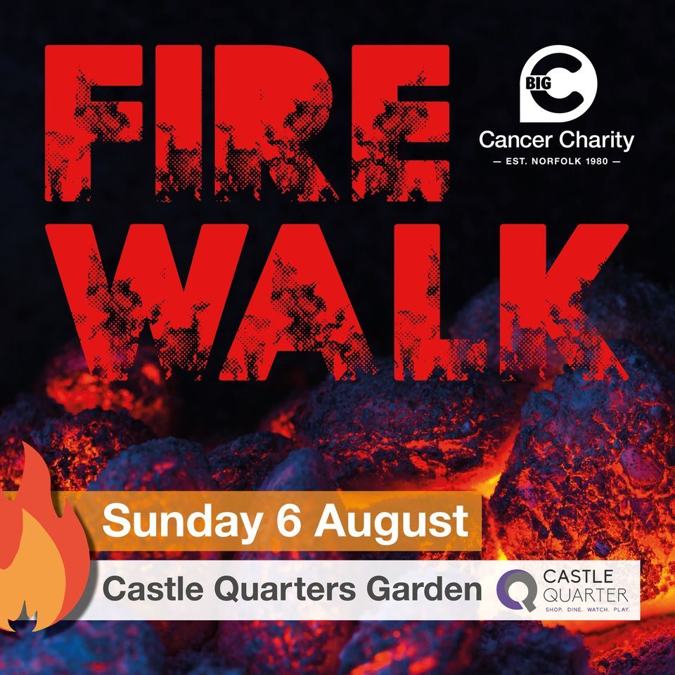Get your adrenaline pumping and step out of your comfort zone this summer by taking on the Big C Firewalk.Join us for our hottest challenge this year and brave the walk over hot coals in front of Norwich Castle at the picturesque Castle Quarter Gardens.