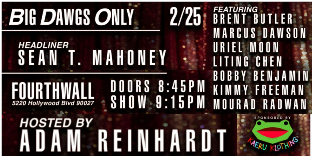 Big Dawgs Only is a stand-up comedy show produced by Adam Reinhardt. Doors at 8:45 p.m and show starts 9:15 p.m.