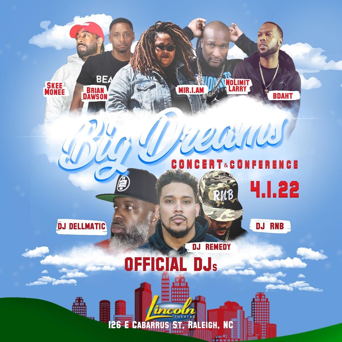 The Big Dreams Concert takes place 7pm-12am and will feature headlining artists plus a limited number featured performers.