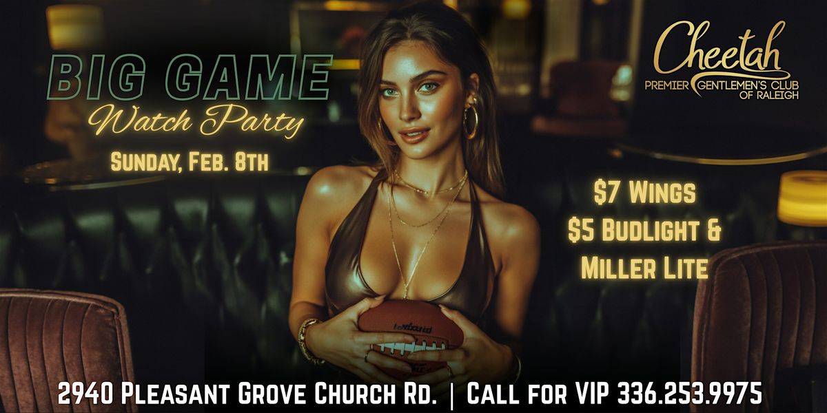 BIG GAME Watch Party @ Cheetah Raleigh, Sunday, Feb. 8th!