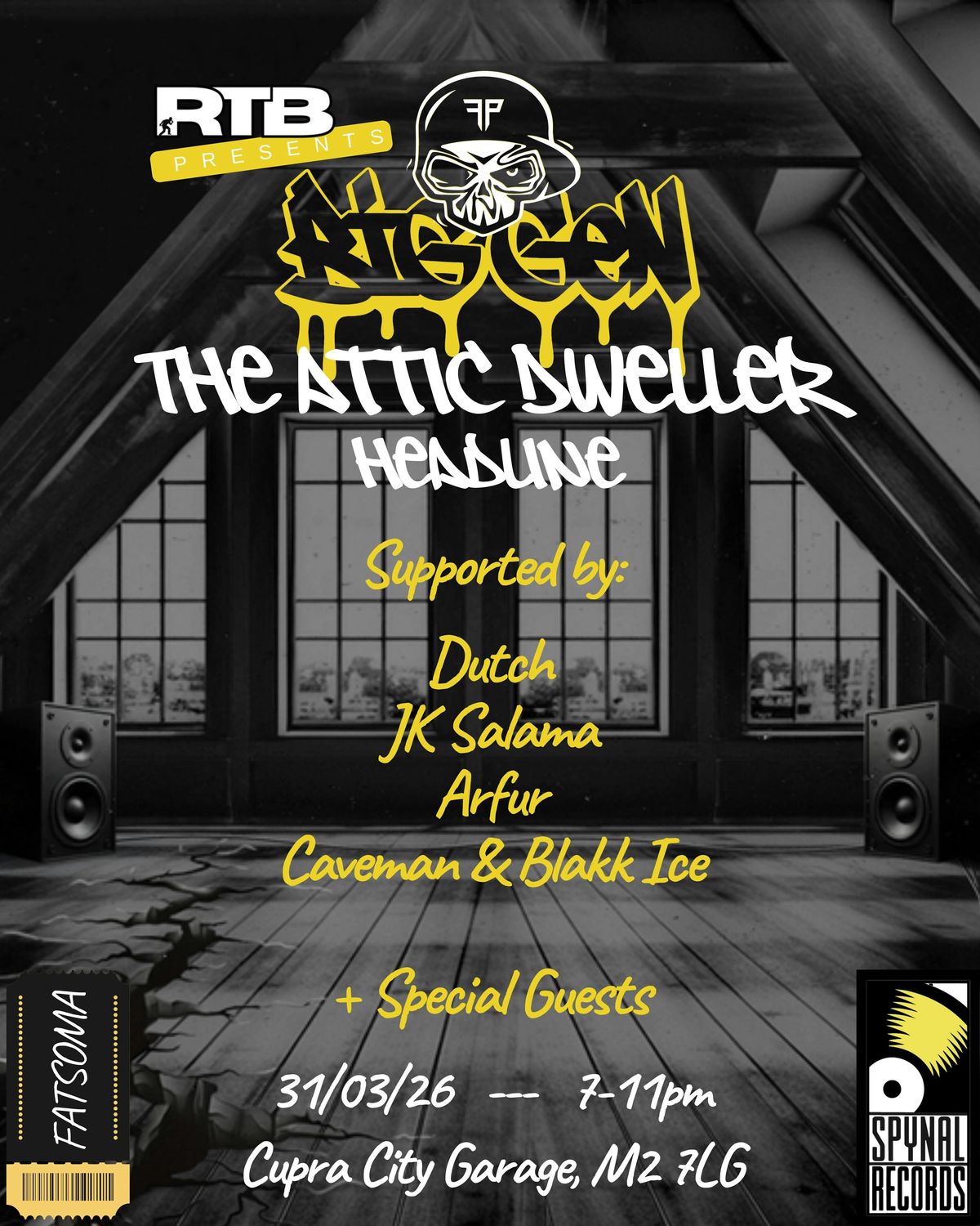 Presented by RTB in collaboration with Spynal Records, the night transforms the venue into an immersive, atmospheric space — drawing people into the attic. Expect dim-lit corners, textured visuals and a setting that mirrors the introspective depth of the mixtape itself.
