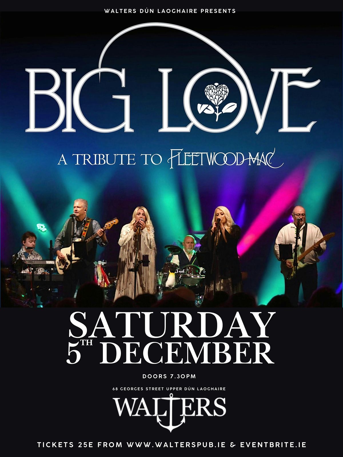 Don't miss the fantastic BIG LOVE Saturday 5th of December 2026 at Walters venue Dún Laoghaire!