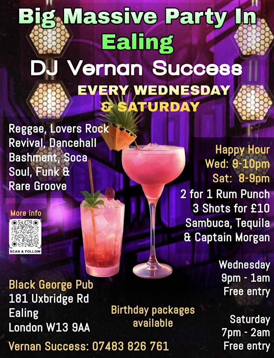 Playing everything great in Reggae & Soul from the past few decades to the present day. Think Dennis Brown to Gregory Isaacs to Chronixx & Bitty Mclean to 2025 party anthems and dancehall & bashment in between; with a sprinkling of new school anthems, slow jams, house, afrobeats, and more. Expect the usual dose of women dancing, sing-out-loud classics, and a hearty stew of stompers courtesy of Vernan Success.