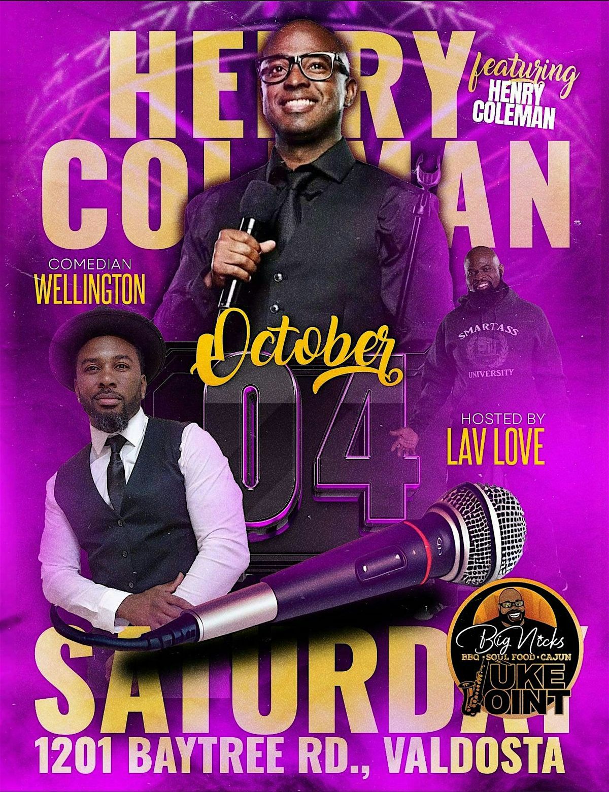 Come join us for a night filled with funny at BIG NICK'S on October 4, 2025, at 9:30 PM (Eastern Time). Get ready for hilarious stand-up performances by Henry Coleman