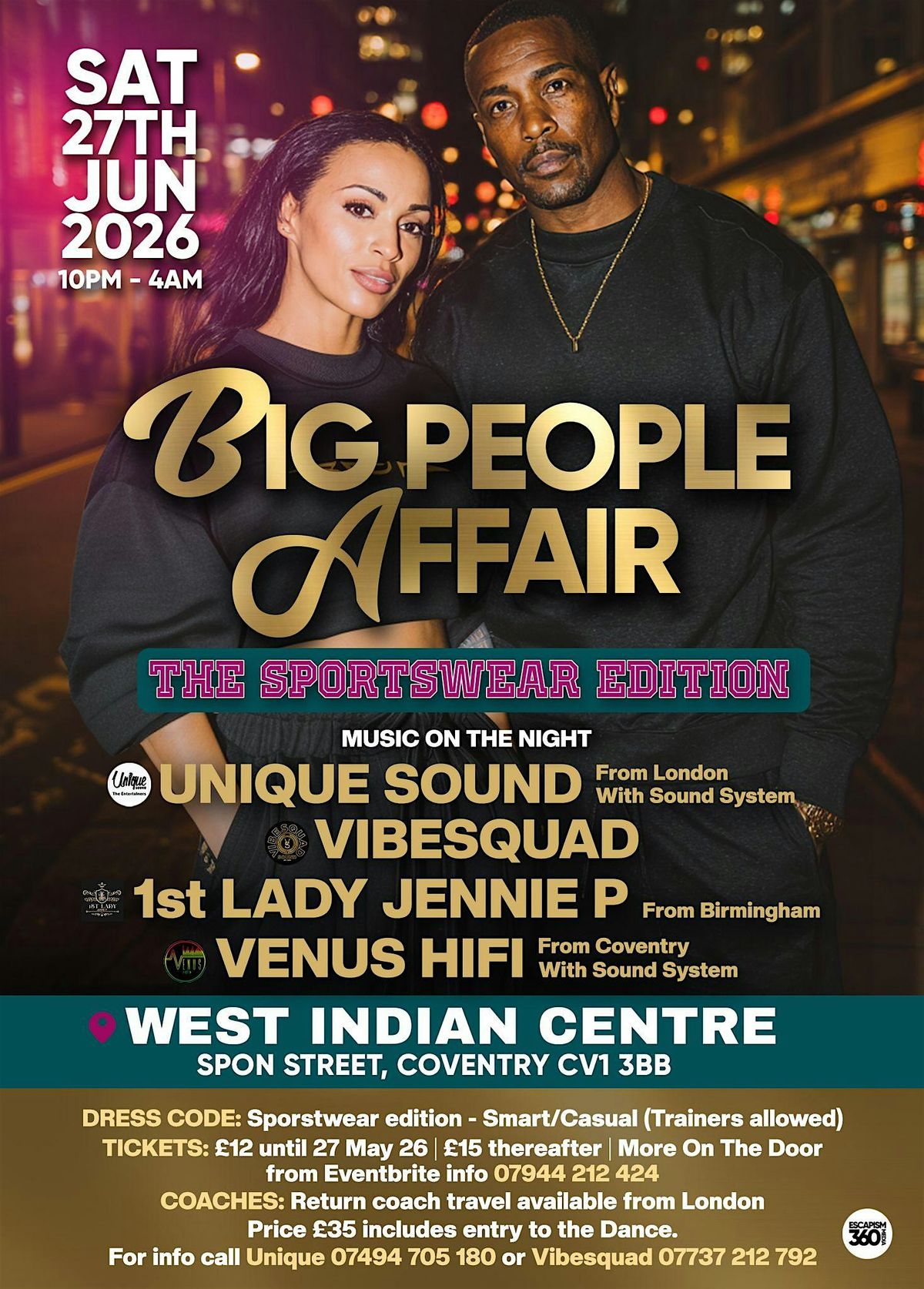 Get ready for an awesome year to year musical event Big People Affair ! Part 4. A night of good music in a party style for the more mature raver. Sound Systems & DJ's from London, Birmingham & Coventry providing you with the best in musical entertainment.
