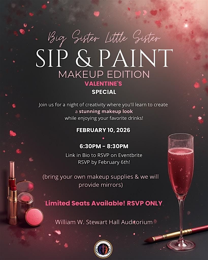 Join us for a super fun in-person event where big sisters and little sisters team up to get creative! Sip your favorite drinks, enjoy great company, and unleash your inner makeup artist. No experience needed—just bring your smiles, makeup supplies and let’s make some memories together!