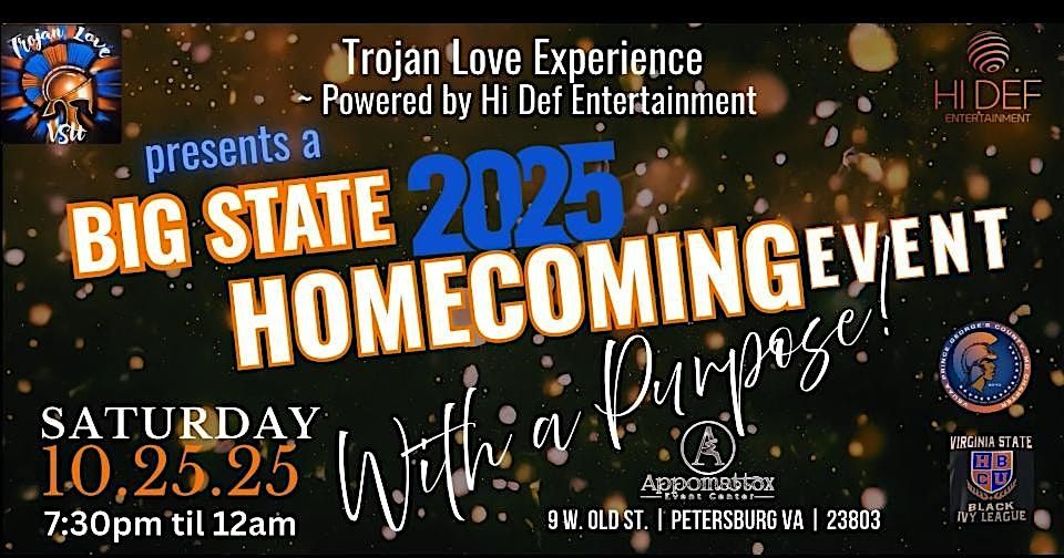 Virginia State University Homecoming is fast approaching and our Annual BIG STATE HOMECOMING PARTY 2025 with a Purpose...