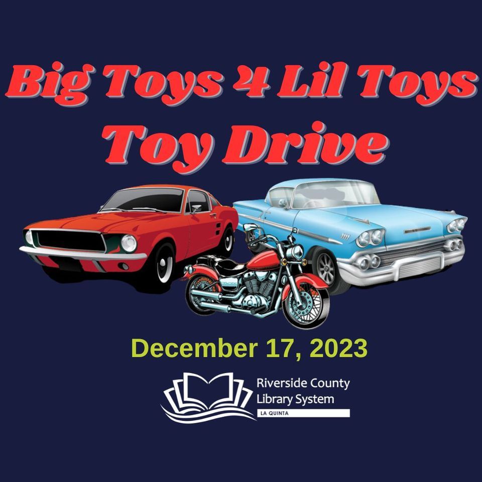 Come help support our toys for tots event, while enjoying some cars and bikes! Event is free but NEW, unwrapped toy donations are welcome. If you would like to display your car/bike, please register at https://bit.ly/Bigs4LilToyDrive