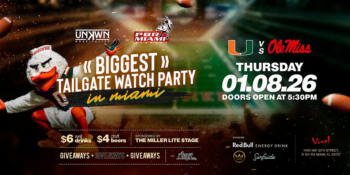 Get ready for an electric tailgate watch party as the Miami Hurricanes take on Ole Miss on 1/8/25 at Vivo Stage presented by UNKWN Group. Catch every play on a massive big screen with full game sound, so you won’t miss a second of the action. This is the spot to rep your colors, cheer loud, and feel the energy of the game with fellow fans.