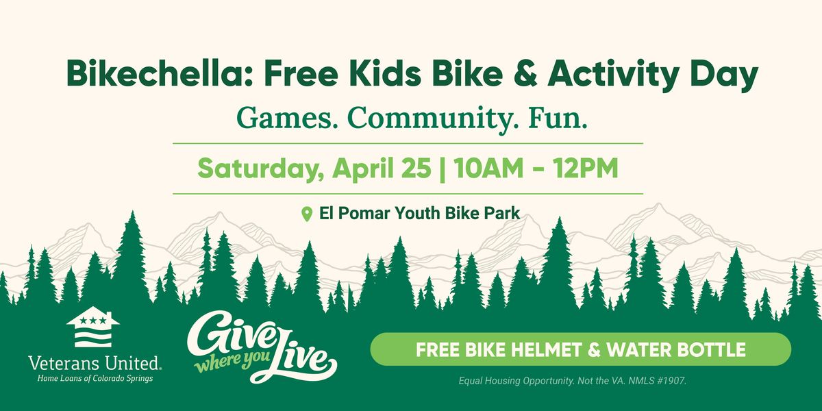 Join us for Bikechella, a free, fun-filled event hosted by Kids on Bikes and a part of Veterans United Home Loans of Colorado Springs Give Where You Live initiative! Kids will ride their bikes through a series of activity stations, enjoying games and surprises along the way.