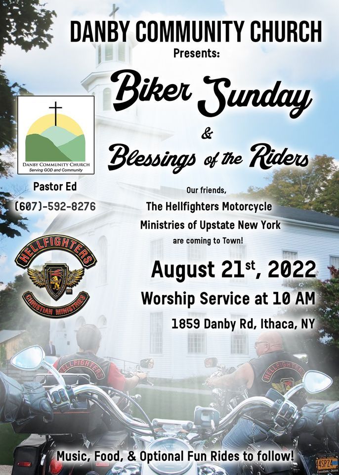 Join us for Biker Sunday and the Blessings of the RidersFood, Music and Optional Fun Rides to Follow! The Hellfighters Motorcycle Ministries of Upstate New York are coming to town!