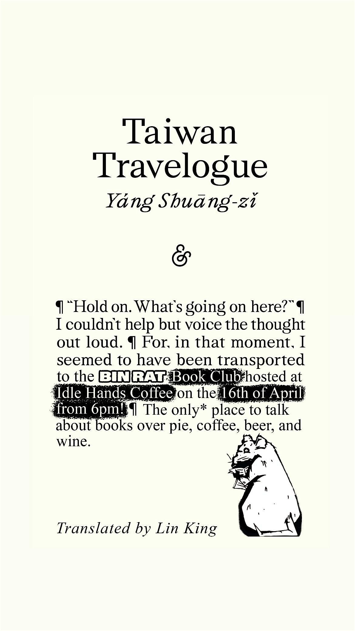 The book this month as selected by our members is Taiwan Travelogue by Yáng Shuāng-Zǐ, a bittersweet story of love woven into an exploration of language, history, and power.