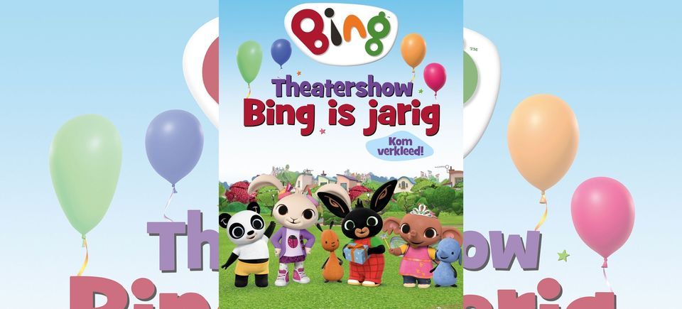 ‘Bing is jarig’ is een vrolijke voorstelling van 60 minuten met nieuwe liedjes van Bing met interactie over de verjaardag van Bing.In de voorstelling viert Bing zijn verjaardag samen met de kinderen in het theater en al zijn bekende vriendjes Coco, Sula, Pando, Amma en natuurlijk Flop. Het hoogtepunt van de voorstelling is het partijtje van Bing, hier zullen al zijn vriendjes verkleed verschijnen. En de kinderen in het theater mogen ook verkleed naar de voorstelling komen!