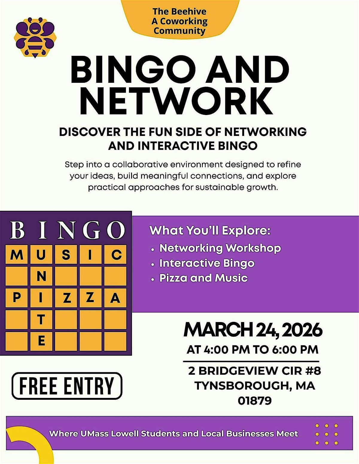 A fun engaging Networking Bingo event aiming to unite UMass Lowell Students and Local businesses with music and pizza!