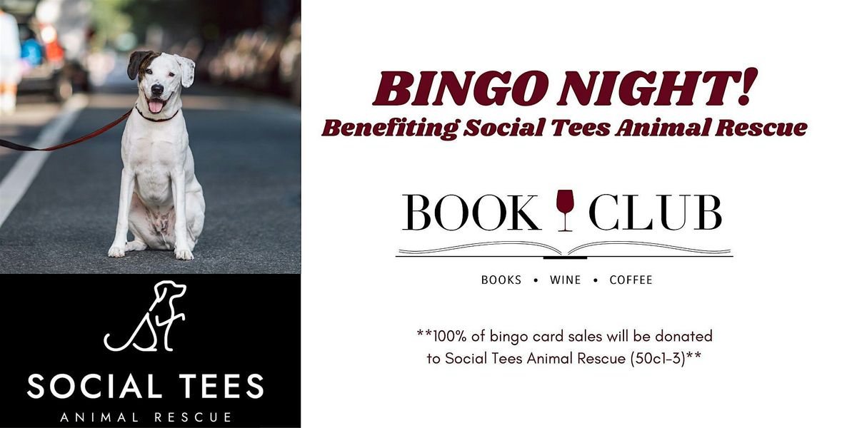 Join Social Tees Animal Rescue at Book Club Bar for a night of BINGO benefiting the rescue's mission.