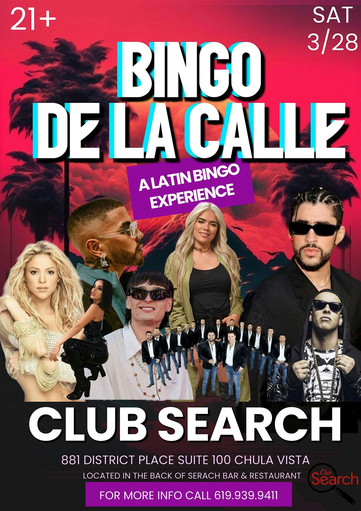 Join us for “Bingo en la Calle”—a 21+ Latin music bingo night! Enjoy all the hits from Bad Bunny, Banda MS, Los Tucanes de Tijuana, Rauw Alejandro, Prince Royce, and more. Experience the ultimate Latin party, play bingo, and compete for fun prizes. The search for the best bingo night is over—don’t miss out!