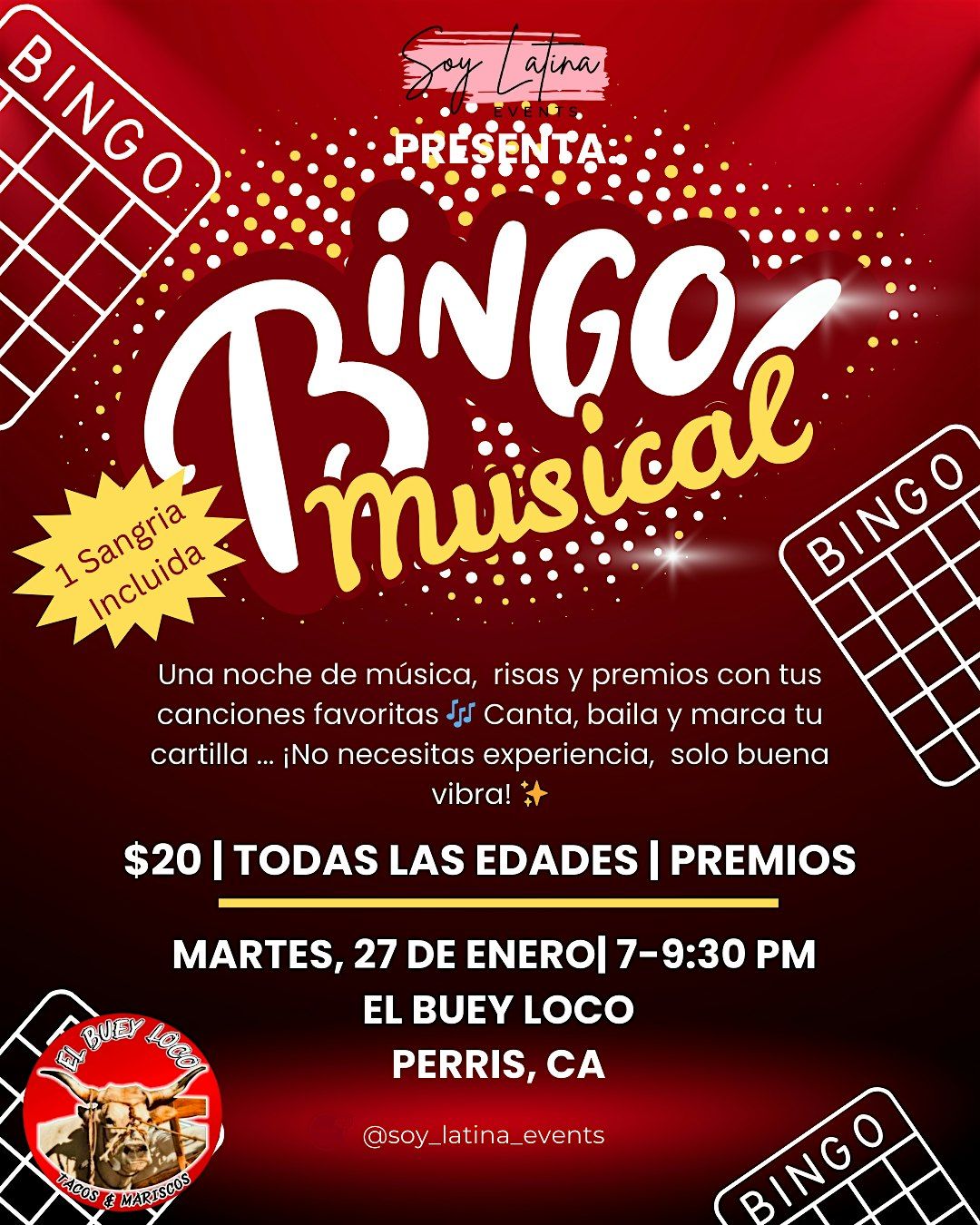 🎶✨ MUSICAL BINGO NIGHT ✨🎶A fun night full of music, laughs, and prizes! 🎤💃🏽Sing along, dance, and mark your bingo card with your favorite songs.✨ No experience needed — just good vibes ✨🍹 1 sangria included👨👩👧👦 All ages