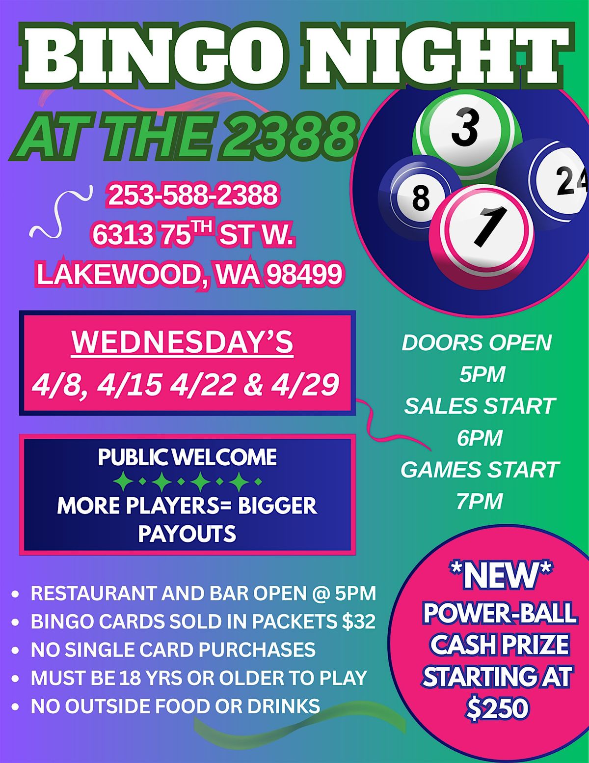 NEW POWER-BALL GAME STARTING AT $250