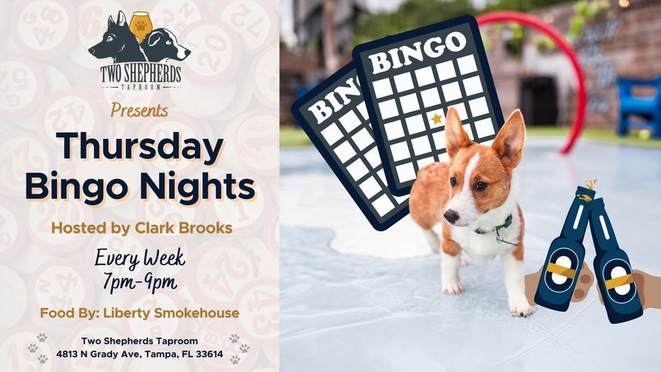 Join us every Thursday night (besides the 4th Thursday of the month), from 7-9pm for our Bingo Night!It's FREE to play and each round winner receives a FREE Two Shepherds Lager! But that's not all, Yappy Hour is ALL NIGHT LONG every Thursday!