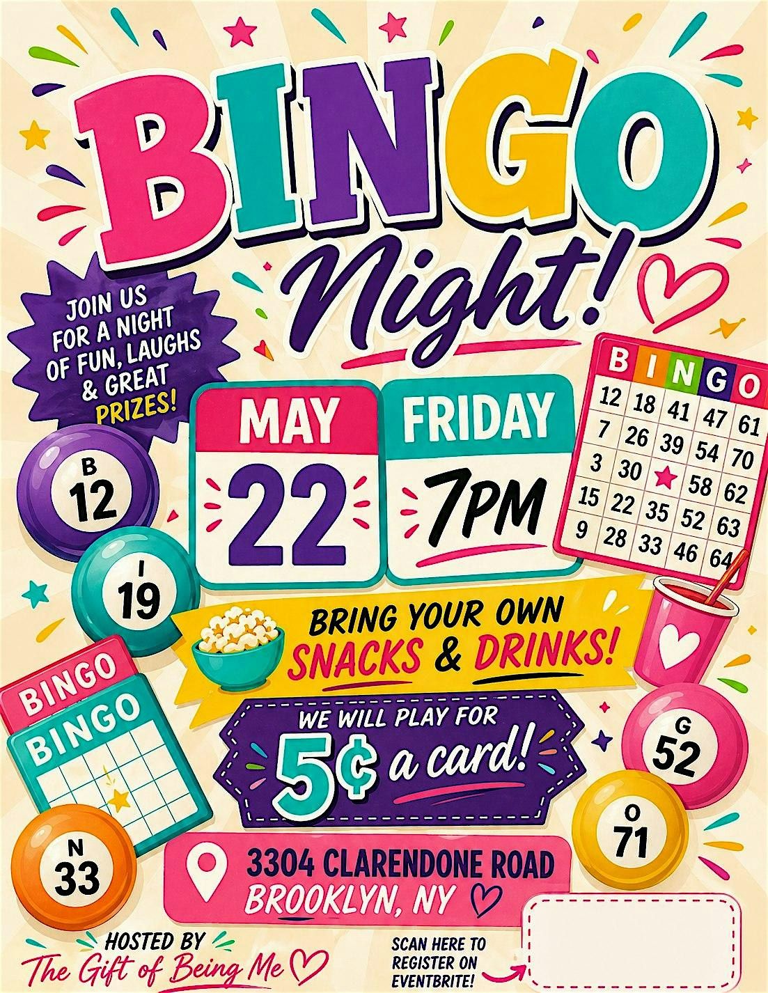 Get ready for a fun-filled Bingo Night with The Gift of Being Me! Join us for an evening of laughs, connection, friendly competition, and prizes.