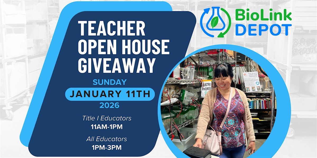 Join us on Sunday, January 11th, 2026 at our Oakland warehouse. We invite all STEM educators to collect lab supplies, for your accredited school - at no cost to you.