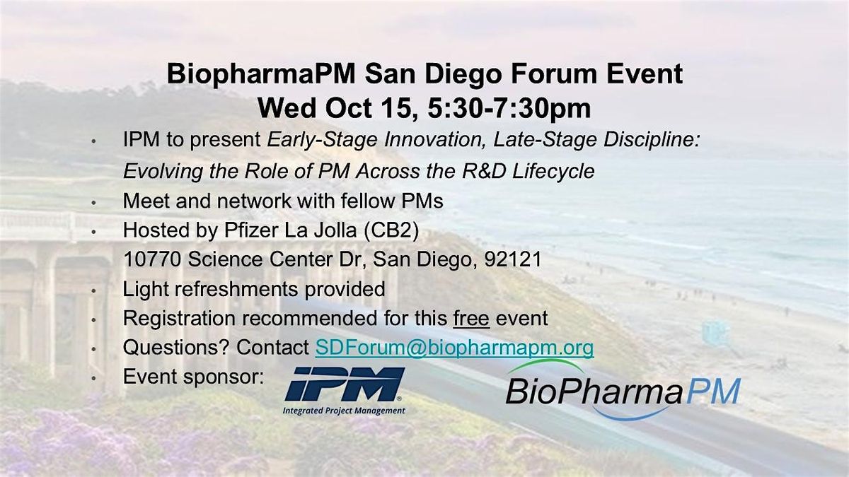 Join us at the BioPharma PM San Diego Forum event for networking, discussions, and insights in life sciences project management