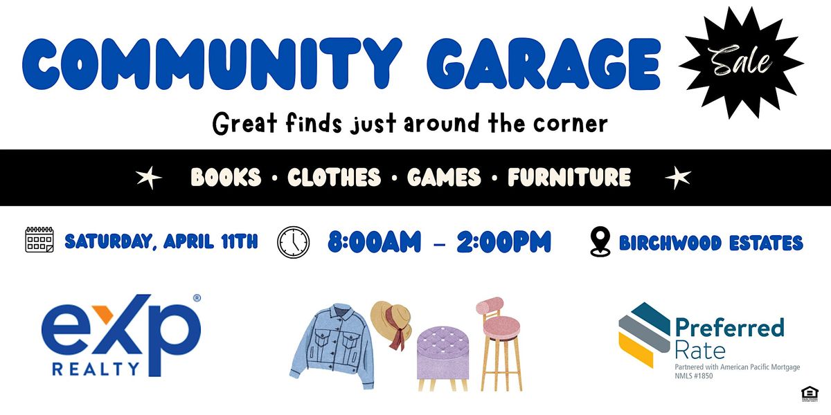 Come join us for a fun-filled day at the Birchwood Estates Community Garage Sale! This in-person event will be held at the Brentwood location. Explore a variety of items for sale from different households in the community. Whether you're looking for furniture, clothes, or unique treasures, you'll likely find something special here. Don't miss out on the chance to score some great deals and meet your neighbors!