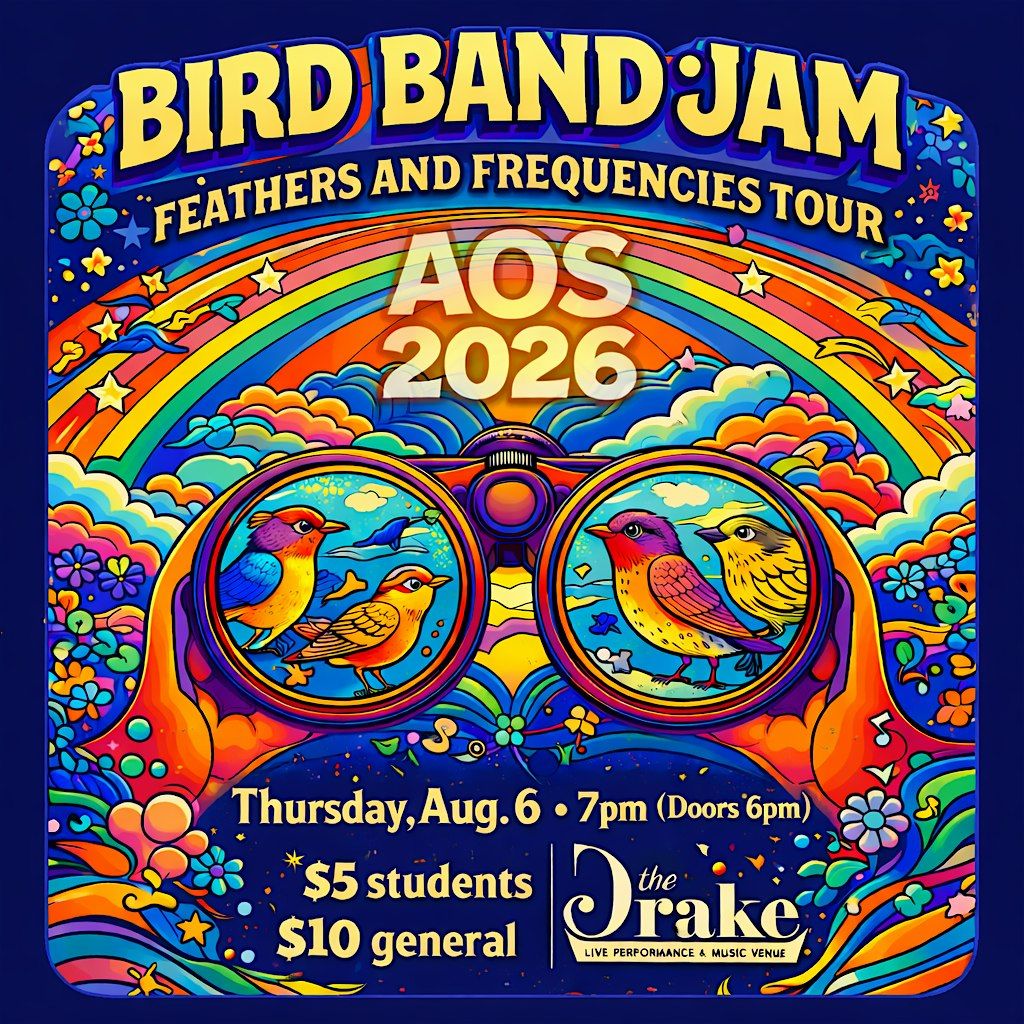 Please join us for the AOS 2026 Bird Band Jam: Feathers and Frequencies Tour at The Drake, a local music venue within walking distance of the UMass, Amherst campus. Come enjoy a rousing night of music, dancing, and celebrating our collective hope for birds with colleagues and friends!