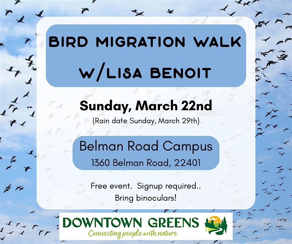 Join us for a fun & casual in-person bird migration walk with the amazing Master Naturalist Lisa Benoit! It's a perfect chance to get outside, enjoy nature, and spot some incredible migrating birds together. Whether you're a newbie or a seasoned birdwatcher, Lisa's tips and stories will make this walk extra special. Don't forget your binoculars!